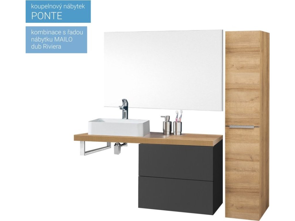 Soubory ke stažení:Série koupelnového nábytku Ponte umožňuje kombinovat skříňky a desky do různých variant. Umožňuje vytvořit kombinace do velkých koupelen i minimalistické řešení v moderním designu. Otevírání zásuvek je řešeno systémem push-open, tedy otevírání bez úchytek. Zásuvky jsou osazeny kvalitním německým kováním značky BLUM s pomalým dovíráním. Na výběr je mnoho barevných variant, Multidecor. Skříňky jsou dodávány ve smontovaném stavu a všechny jsou určeny k zavěšení.