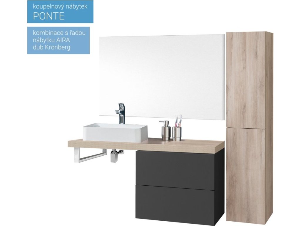 Soubory ke stažení:Série koupelnového nábytku Ponte umožňuje kombinovat skříňky a desky do různých variant. Umožňuje vytvořit kombinace do velkých koupelen i minimalistické řešení v moderním designu. Otevírání zásuvek je řešeno systémem push-open, tedy otevírání bez úchytek. Zásuvky jsou osazeny kvalitním německým kováním značky BLUM s pomalým dovíráním. Na výběr je mnoho barevných variant, Multidecor. Skříňky jsou dodávány ve smontovaném stavu a všechny jsou určeny k zavěšení.