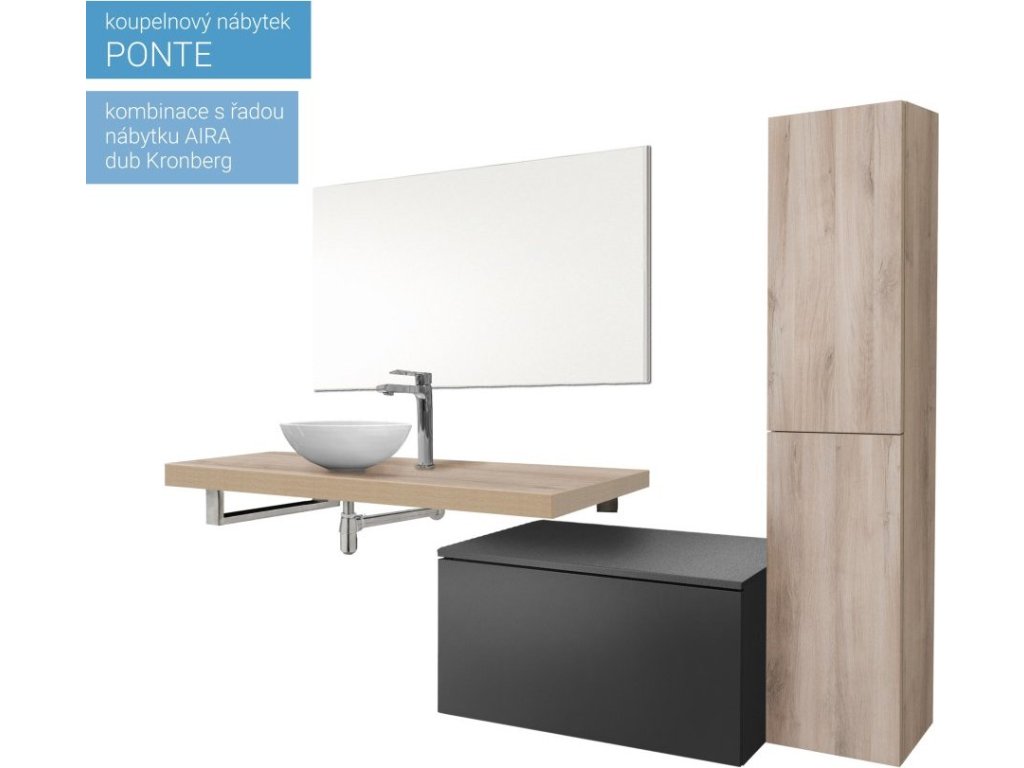 Soubory ke stažení:Série koupelnového nábytku Ponte umožňuje kombinovat skříňky a desky do různých variant. Umožňuje vytvořit kombinace do velkých koupelen i minimalistické řešení v moderním designu. Otevírání zásuvek je řešeno systémem push-open, tedy otevírání bez úchytek. Zásuvky jsou osazeny kvalitním německým kováním značky BLUM s pomalým dovíráním. Na výběr je mnoho barevných variant, Multidecor. Skříňky jsou dodávány ve smontovaném stavu a všechny jsou určeny k zavěšení.