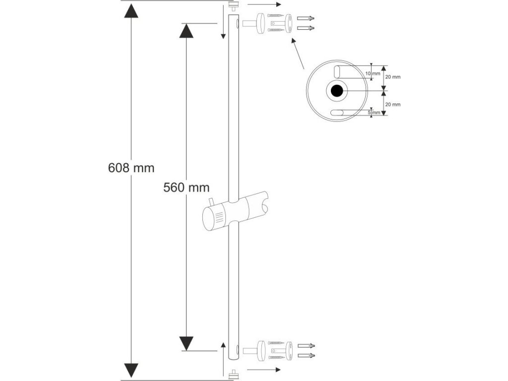 Držák sprchy 710 mm, nerezová tyč ø 22 mm, ostatní současti z pochromovaného plastu