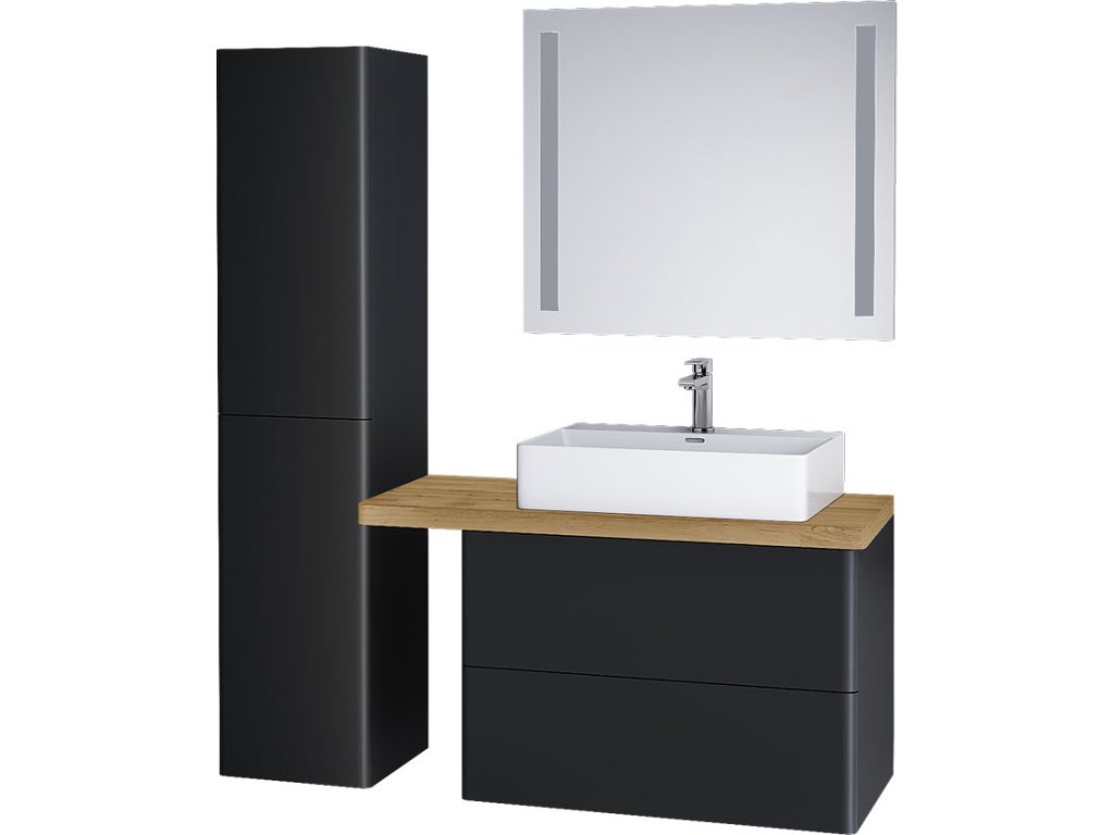 Série Siena vyniká jemnými, čistými liniemi a elegantním designem. Celá kompozice vychází z ladně zaoblených hran koupelnových skříněk, které harmonicky doplňují umyvadla, masivní dubové desky, vysoké skříně i galerky.