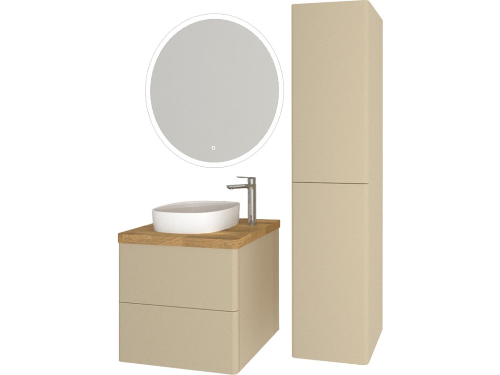 Série Siena vyniká jemnými, čistými liniemi a elegantním designem. Celá kompozice vychází z ladně zaoblených hran koupelnových skříněk, které harmonicky doplňují umyvadla, masivní dubové desky, vysoké skříně i galerky.