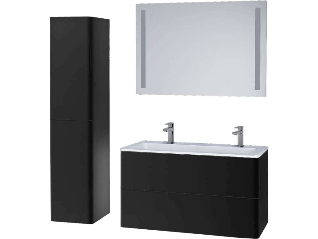 Série Siena vyniká jemnými, čistými liniemi a elegantním designem. Celá kompozice vychází z ladně zaoblených hran koupelnových skříněk, které harmonicky doplňují umyvadla, masivní dubové desky, vysoké skříně i galerky.