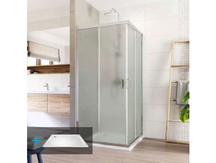 Hliníkové profily, sklo Point, síla skla 6 mm, čtverec, rozměr 900 x 900 mm, výška 1900 mm, vanička litý mramor, sifon