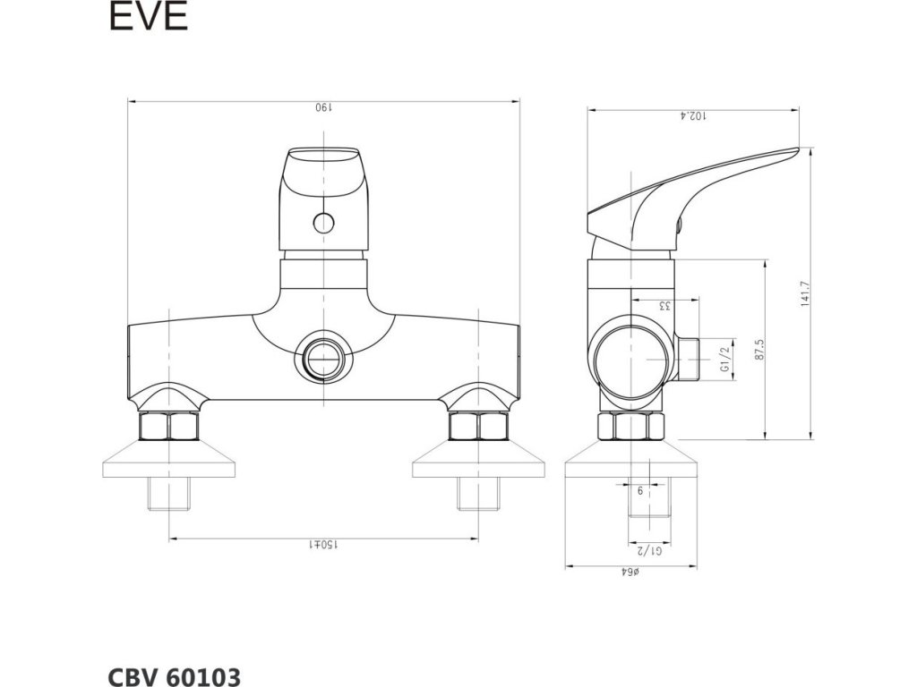 Mereo Sprchová nástěnná baterie, Eve, bez příslušenství, 150 mm, chrom CBV60103