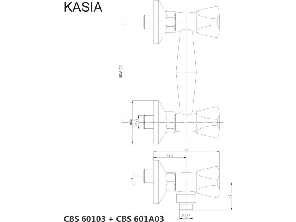 Mereo Sprchová nástěnná baterie, Kasia, 150 mm, bez příslušenství, chrom CBS60103