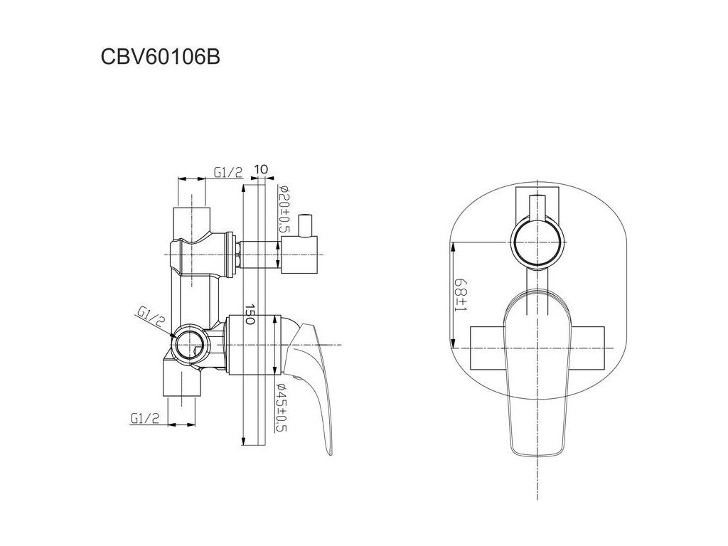 Mereo Sprchová podomítková baterie s přepínačem, Eve, Mbox, oválný kryt, chrom CBV60106B