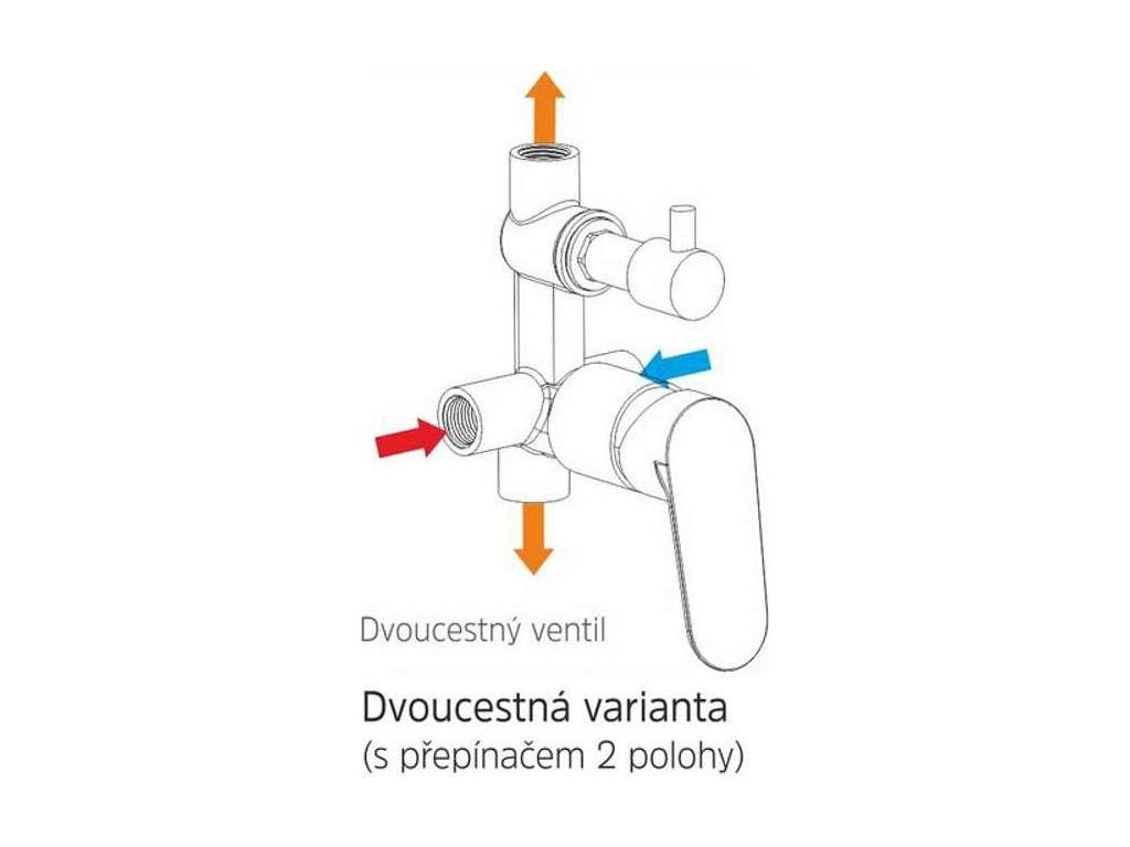 Dvoucestná varianta (s přepínačem 2 polohy) je určena do sprchových koutů s ruční a hlavovou sprchou nebo k vaně s napouštěním přepadem a možnosti sprchování.