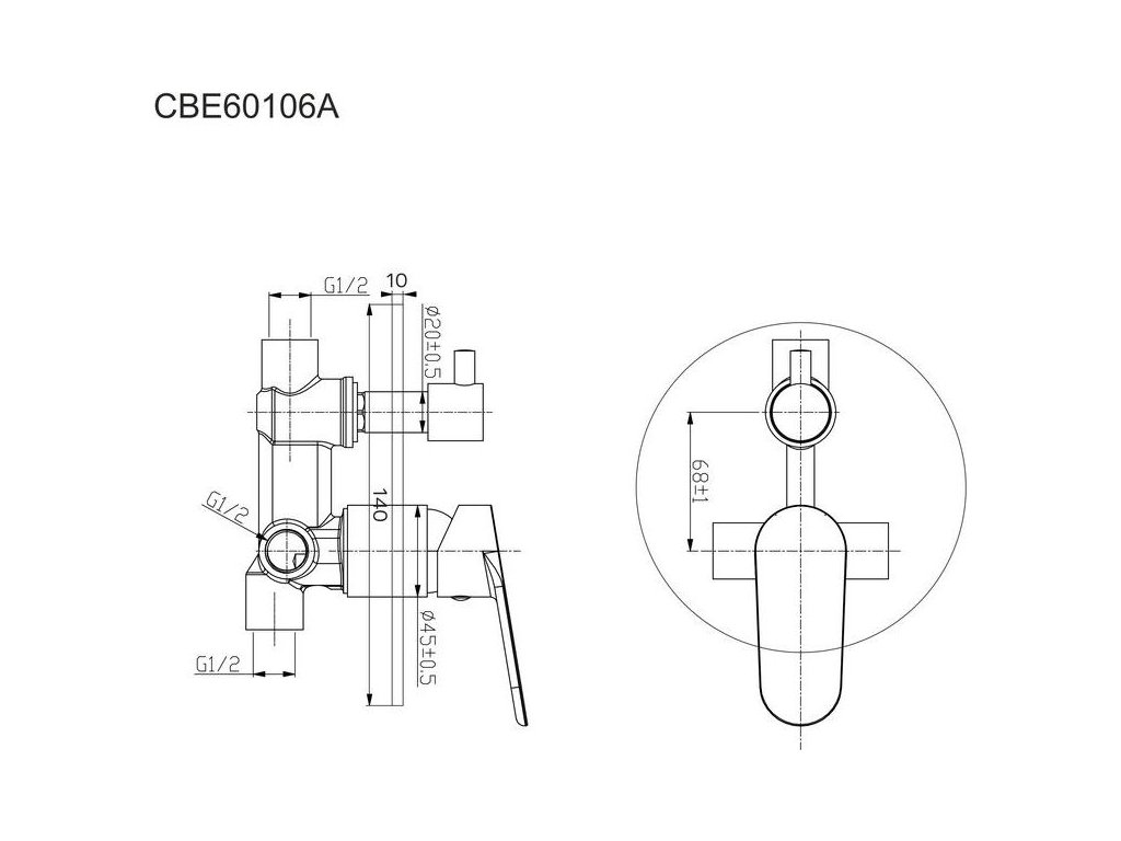 Mereo Sprchová podomítková baterie s přepínačem, Viana, Mbox, kulatý kryt, chrom CBE60106A