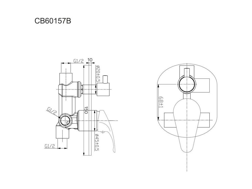 Mereo Sprchová podomítková baterie s trojcestným přepínačem, Sonáta, Mbox, oválný kryt, chrom CB60157B
