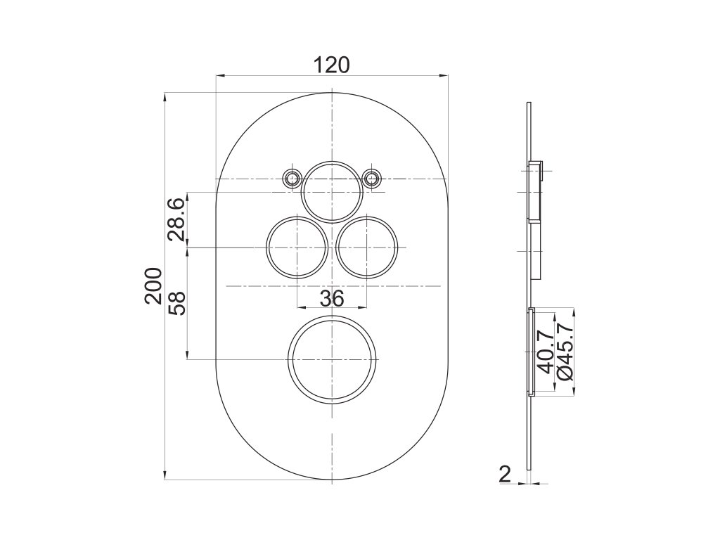Mereo Sprchová sada s podomítkovou baterií - 3 cestná - oválný kryt CB60157TB4