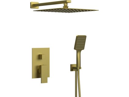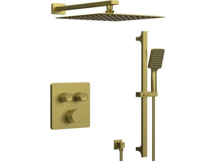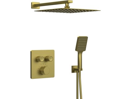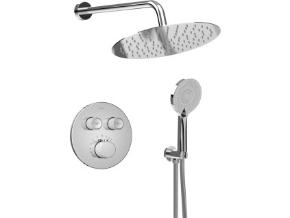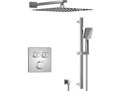 Sprchová sada s termostatickou podomítkovou tlačítkovou baterií - 3-cestná - hranatý kryt