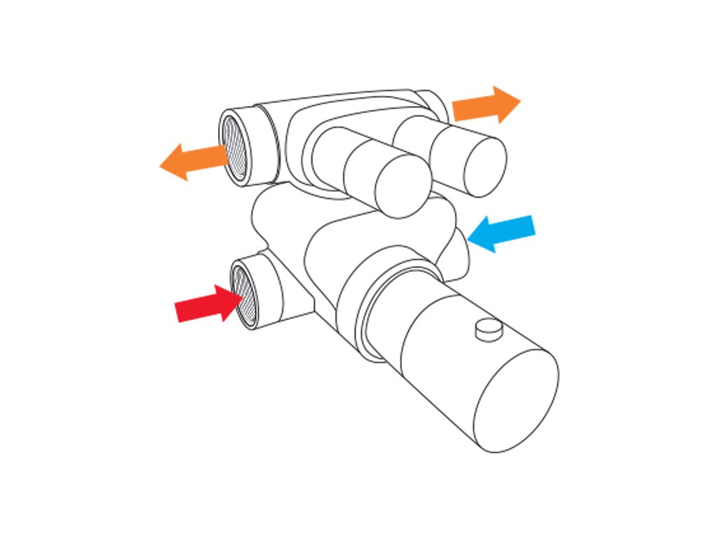 Dvoucestná varianta (přepínání dvou poloh tlačítkem) je určena do sprchových koutů s ruční a hlavovou sprchou nebo k vaně s napouštěním přepadem a možnosti sprchování.