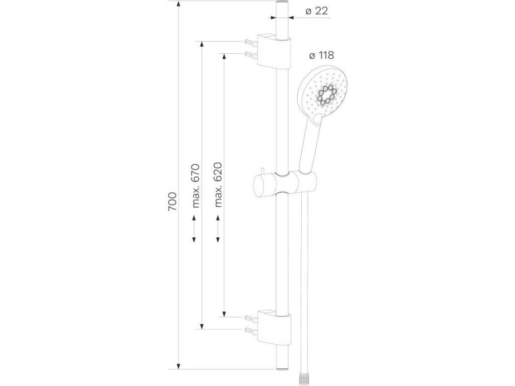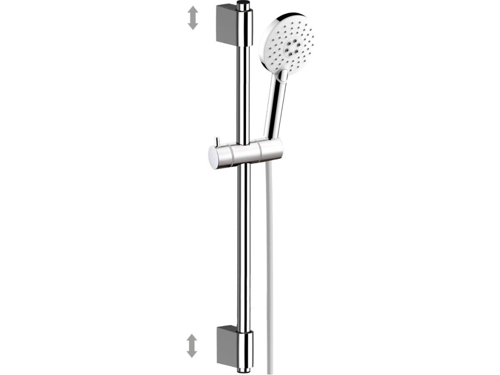Díky posuvnému jezdci si můžete výšku sprchy nastavit dle potřeby. Kotvící držáky nejsou pevně spojené s tyčí a je tedy možné je na tyči posunout a využít děr po předchozím držáku ve Vaší koupelně.