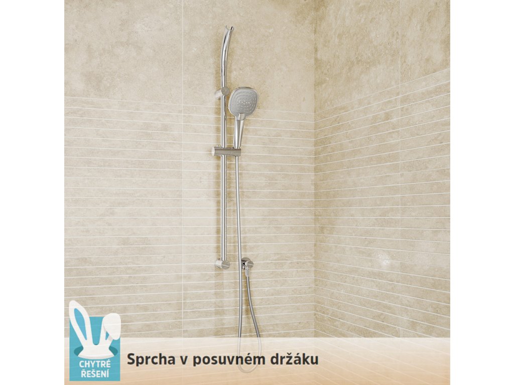 Soubory ke stažení:Sprchová souprava se vyznačuje moderním designem, vysokou variabilitou a především umožňuje téměř libovolnou kombinaci s příslušenstvím sprchového programu. Sprchový set obsahuje ruční sprchovou hlavici s třemi polohami, stavitelný držák, horní držák, záslepku a šedostříbrnou hadici o délce 150 cm. Hadice se montuje mezi baterii a sprchovou hlavici.