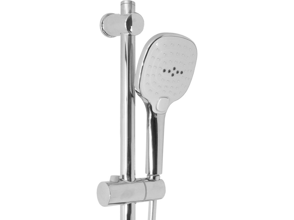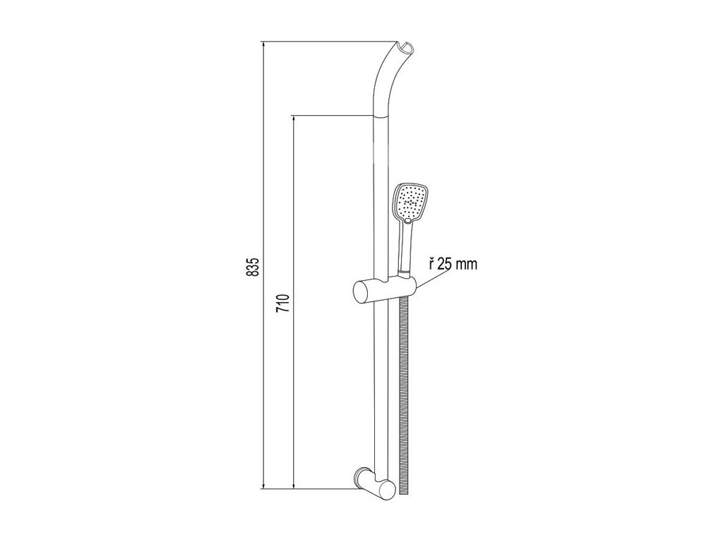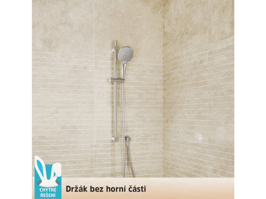 Tento posuvný držák sprchy umožňuje použití se záslepkou v horní části, čímž vzniká klasická rovná tyč, nebo je možné použít horní pevný držák sprchy.