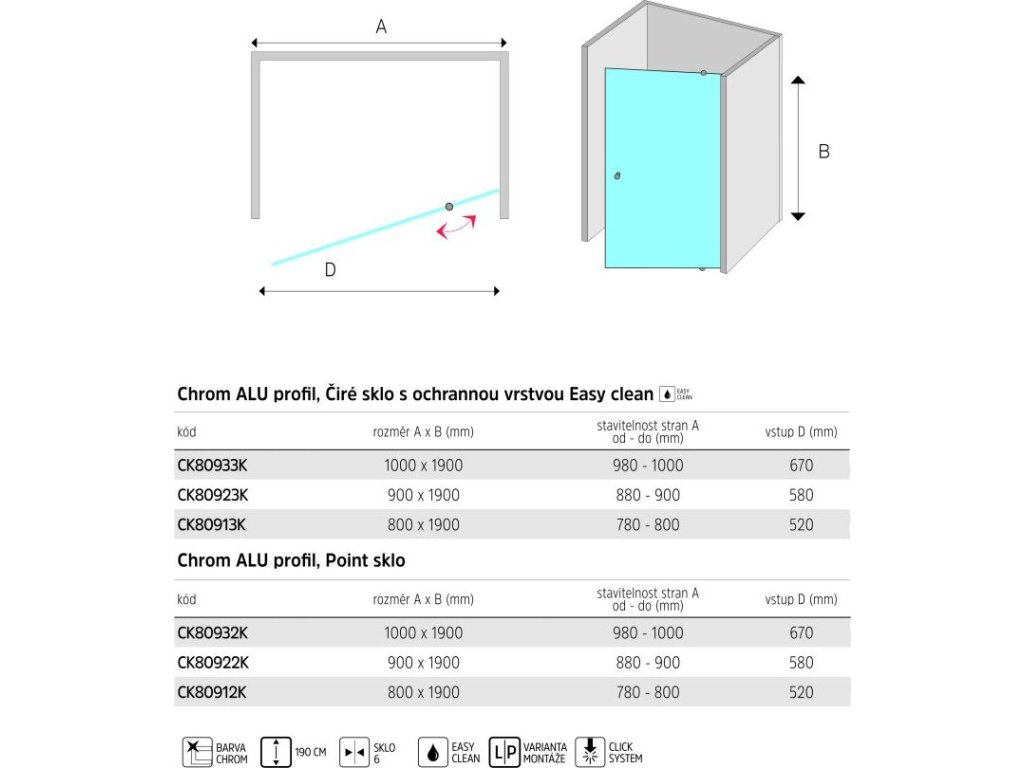 Mereo Sprchové dveře, Lima, pivotové, 100x190 cm, chrom ALU, sklo Čiré CK80933K