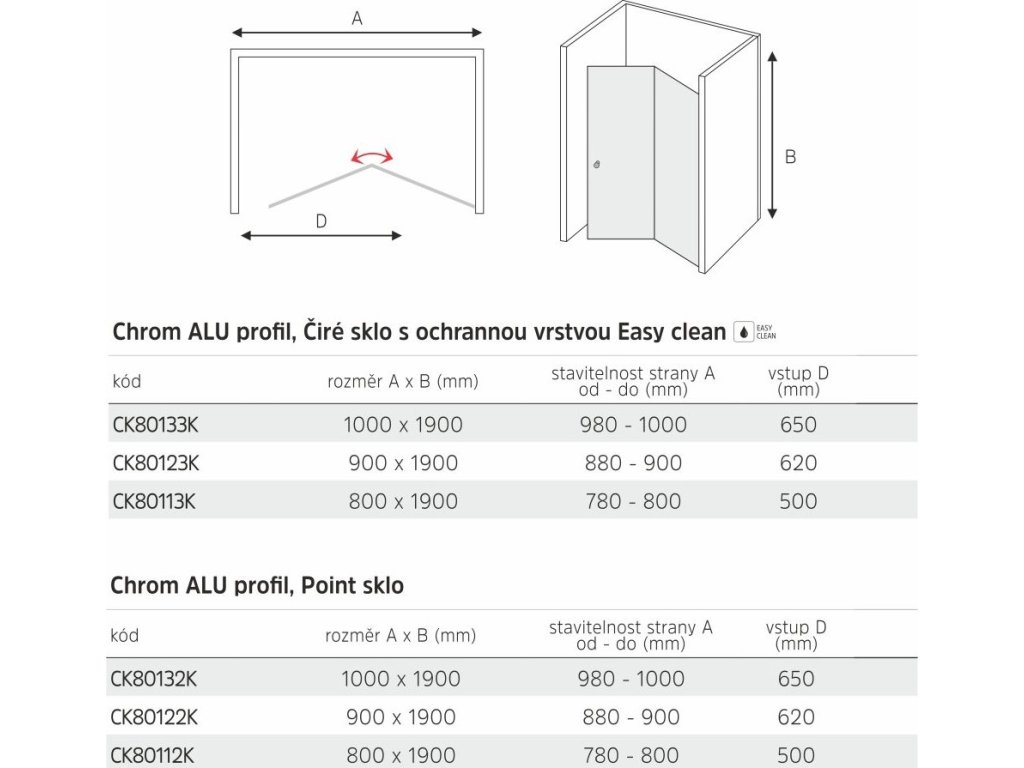 Mereo Sprchové dveře, Lima, zalamovací, 100x190 cm, chrom ALU, sklo Point CK80132K