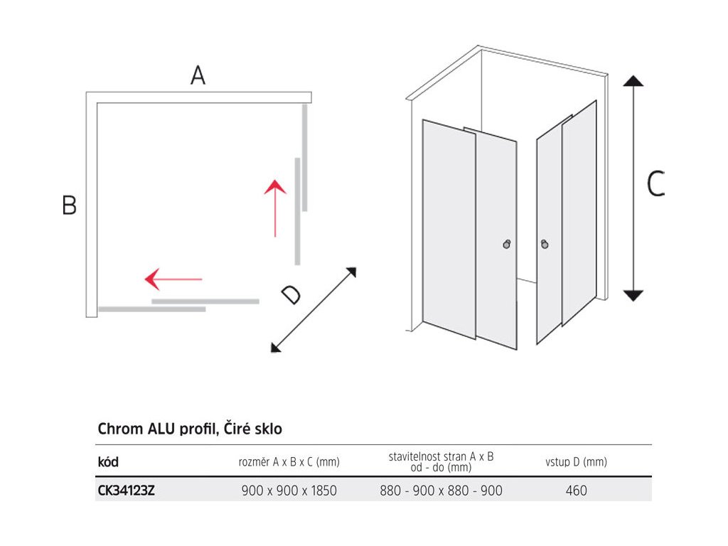 Mereo Sprchový kout, Kora Lite, čtverec, zasunovací, 90x90 cm, chrom ALU, sklo Čiré CK34123Z