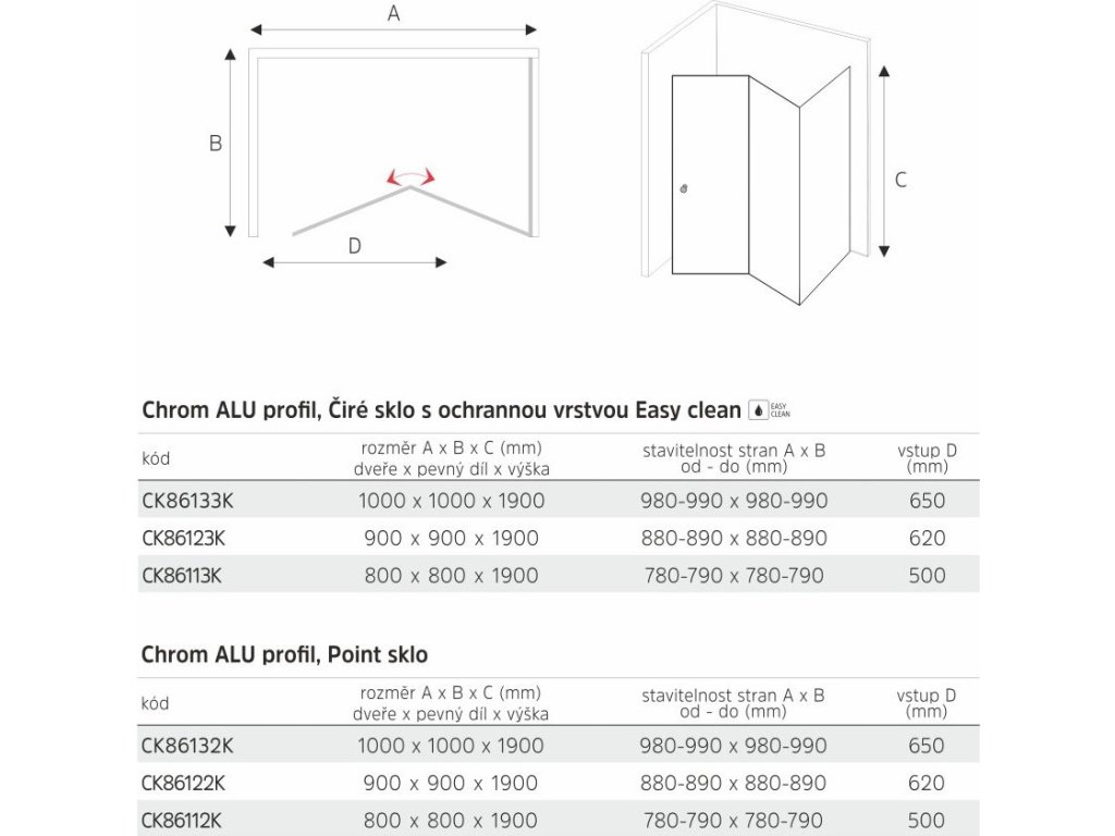 Mereo Sprchový kout, Lima, čtverec, zalamovací, 100x100 cm, chrom ALU, sklo Point CK86132K