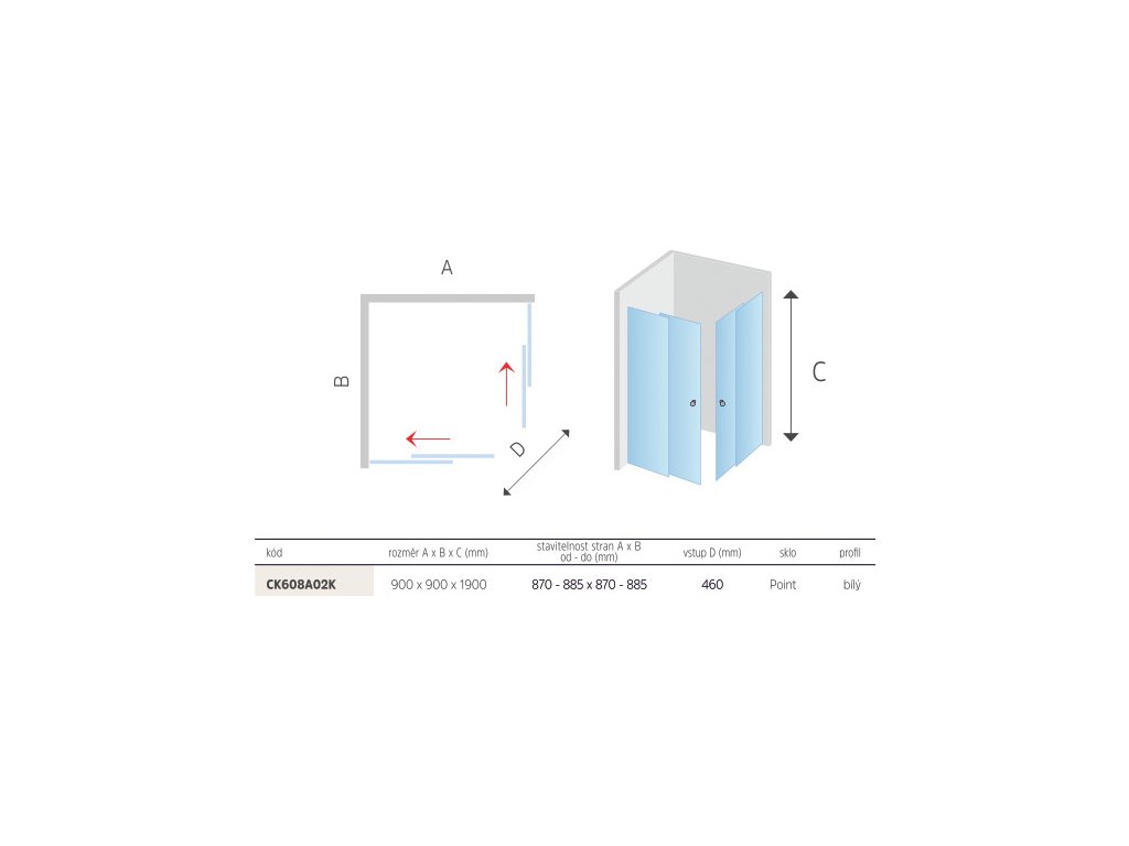 Mereo Sprchový kout, Lima, čtverec, zasunovací, 90x90 cm, bílý ALU, sklo Point CK608A02K