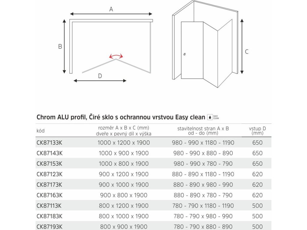 Mereo Sprchový kout, Lima, obdélník, zalamovací, 100x80 cm, chrom ALU, sklo Čiré CK87153K