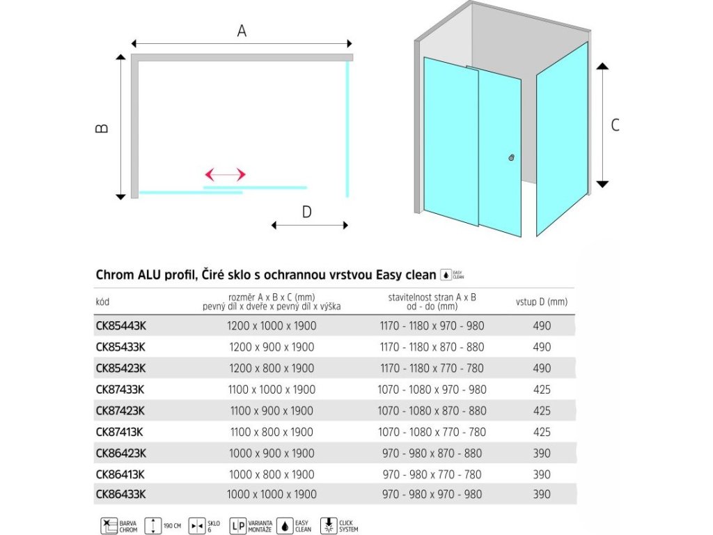 Výrobky v čirém provedení jsou opatřeny ochrannou vrstvou skla již při výrobě EASY CLEAN. Tato ochranná vrstva vytváří na povrchu skla neviditelný štít. Odstřikující voda je odpuzována a nemůže reagovat s povrchem skla. Tím nedochází k usazování nečistot, minerálů a nemnoží se bakterie. Proto je sklo snadno čistitelné.