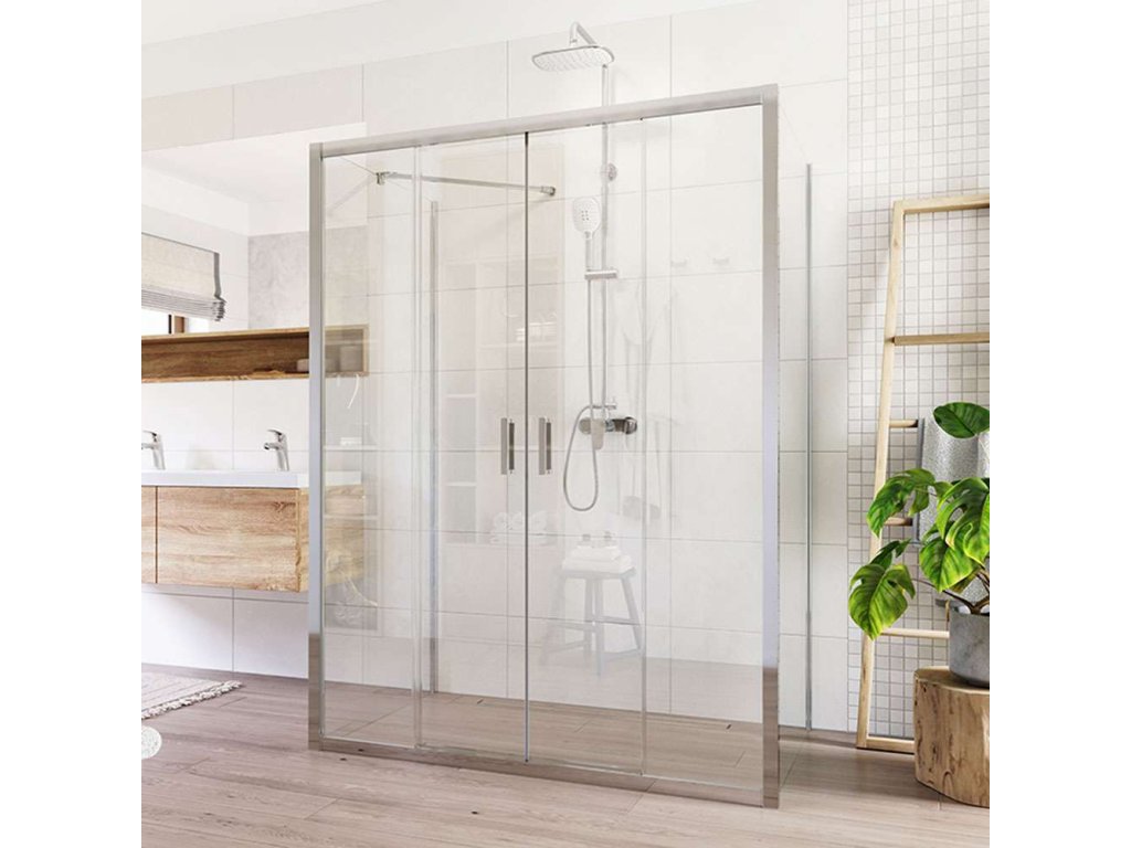 Mereo Sprchový kout, Lima, obdélník do prostoru U, čtyřdílné, zasun.,100x140x100 cm, chrom ALU, sklo Čiré CK85833K