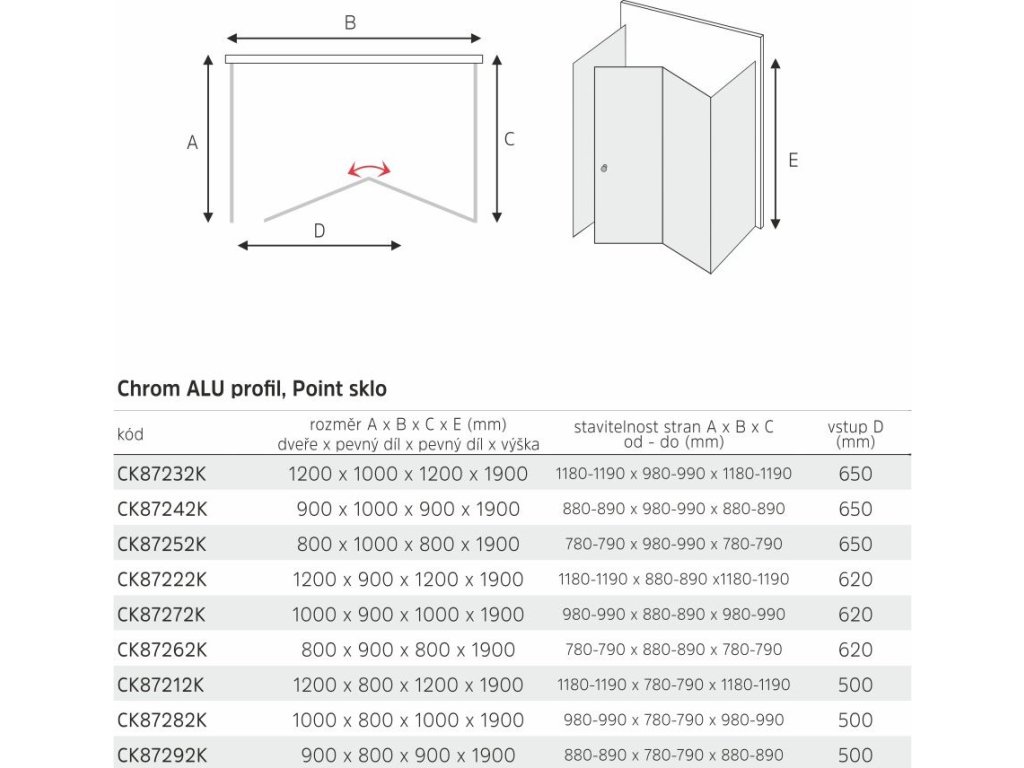 Mereo Sprchový kout, Lima, obdélník do prostoru U, zalamovací, 120x90x120 cm, chrom ALU, sklo Point CK87222K