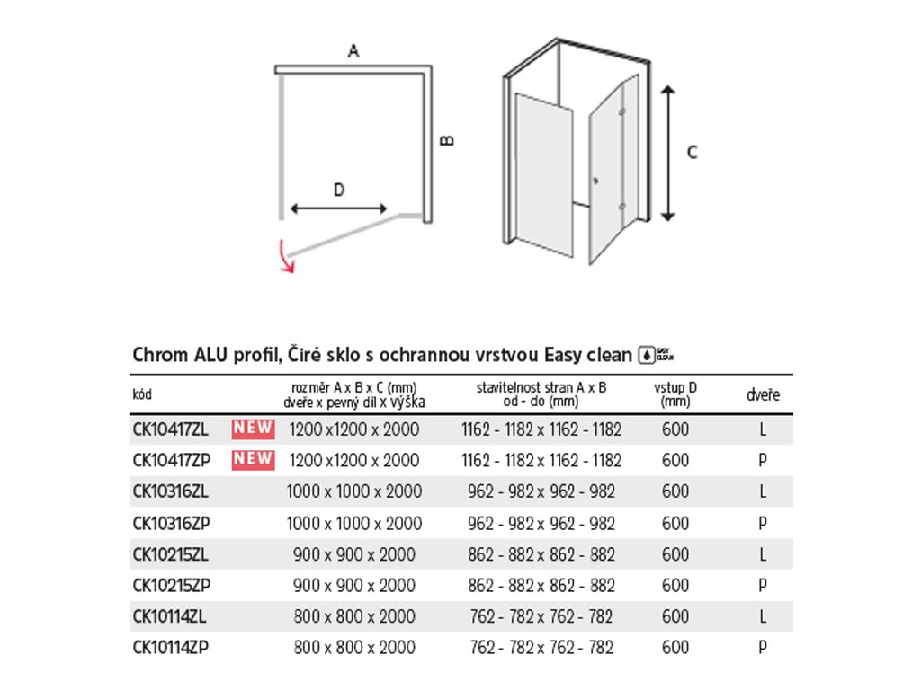 Mereo Sprchový kout, Novea, čtverec, pantový,80x80 cm, chrom ALU, sklo Čiré, dveře pravé a pevný díl CK10114ZP