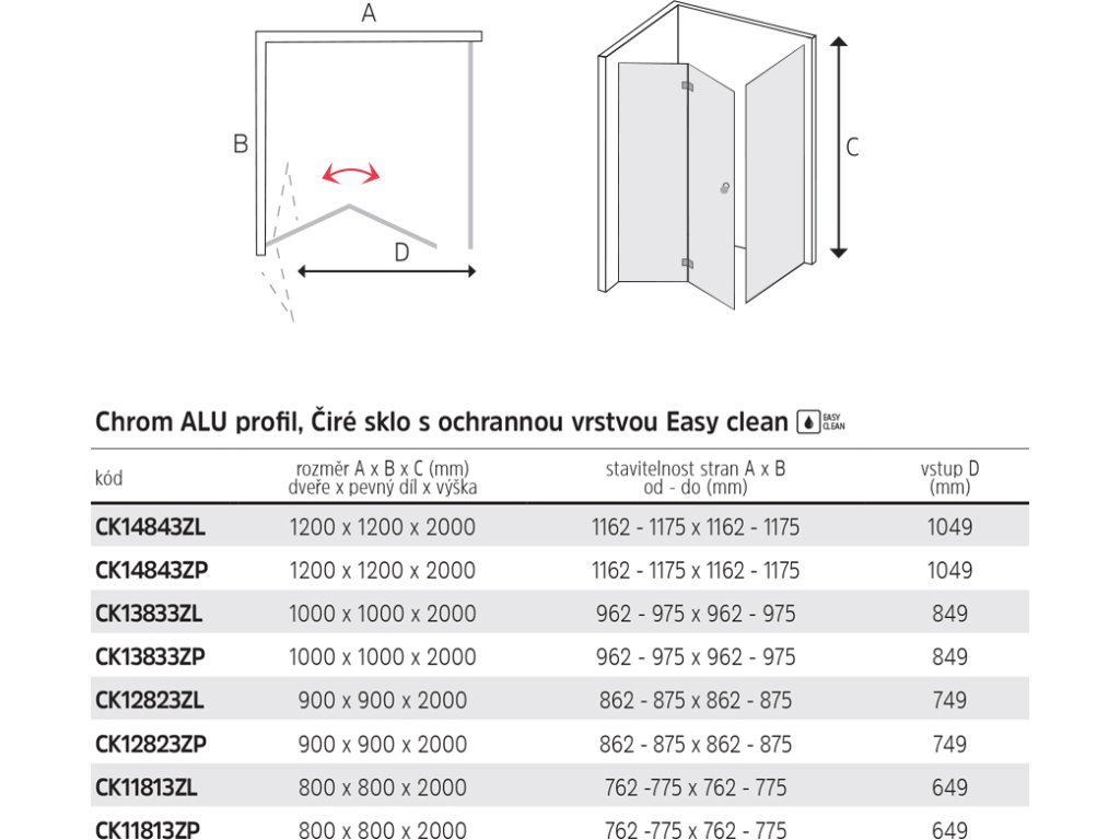 Mereo Sprchový kout, Novea, čtverec, zalamovací, 80x80 cm, chrom ALU, sklo Čiré, dveře levé a pevný díl CK11813ZL