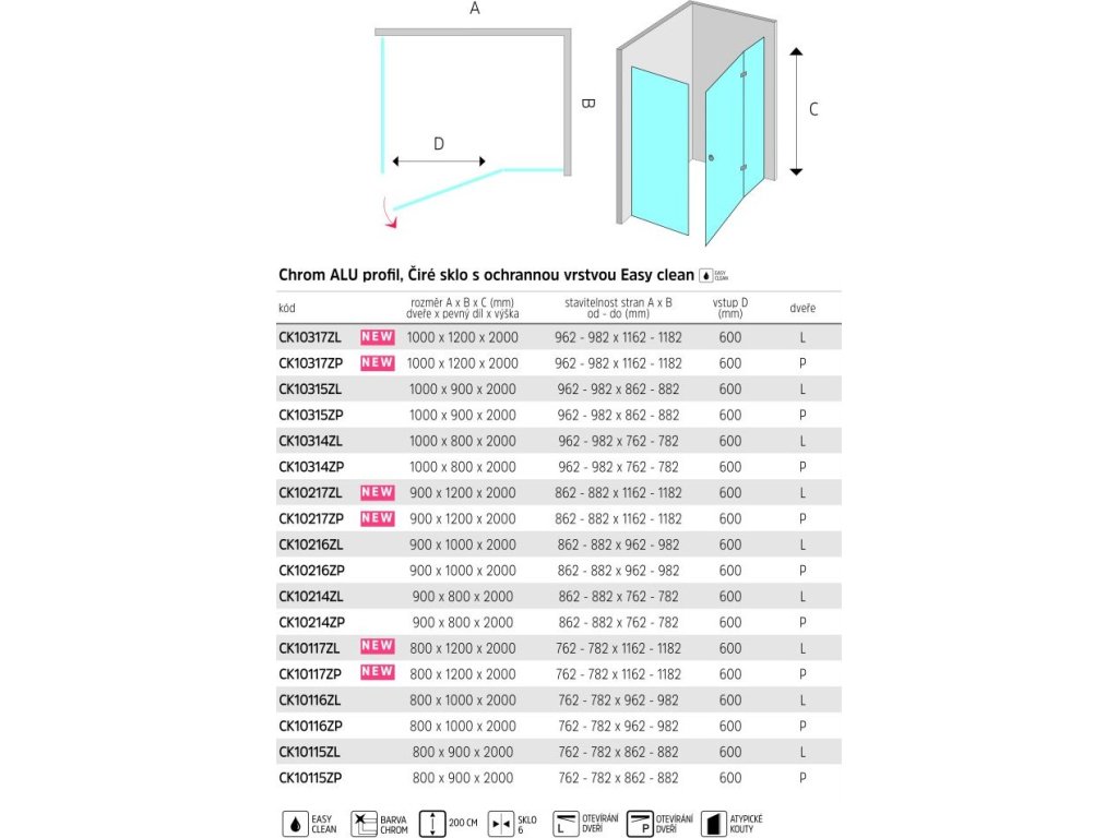 Mereo Sprchový kout, Novea, obdélník, pantový, 100x120 cm, chrom ALU, sklo Čiré, dveře levé a pevný díl CK10317ZL