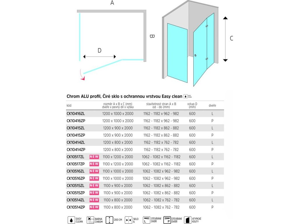 Mereo Sprchový kout, Novea, obdélník, pantový, 80x90 cm, chrom ALU, sklo Čiré, dveře levé a pevný díl CK10115ZL
