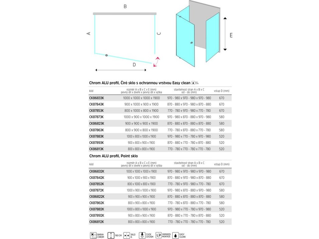 Výrobky v čirém provedení jsou opatřeny ochrannou vrstvou skla již při výrobě EASY CLEAN. Tato ochranná vrstva vytváří na povrchu skla neviditelný štít. Odstřikující voda je odpuzována a nemůže reagovat s povrchem skla. Tím nedochází k usazování nečistot, minerálů a nemnoží se bakterie. Proto je sklo snadno čistitelné.