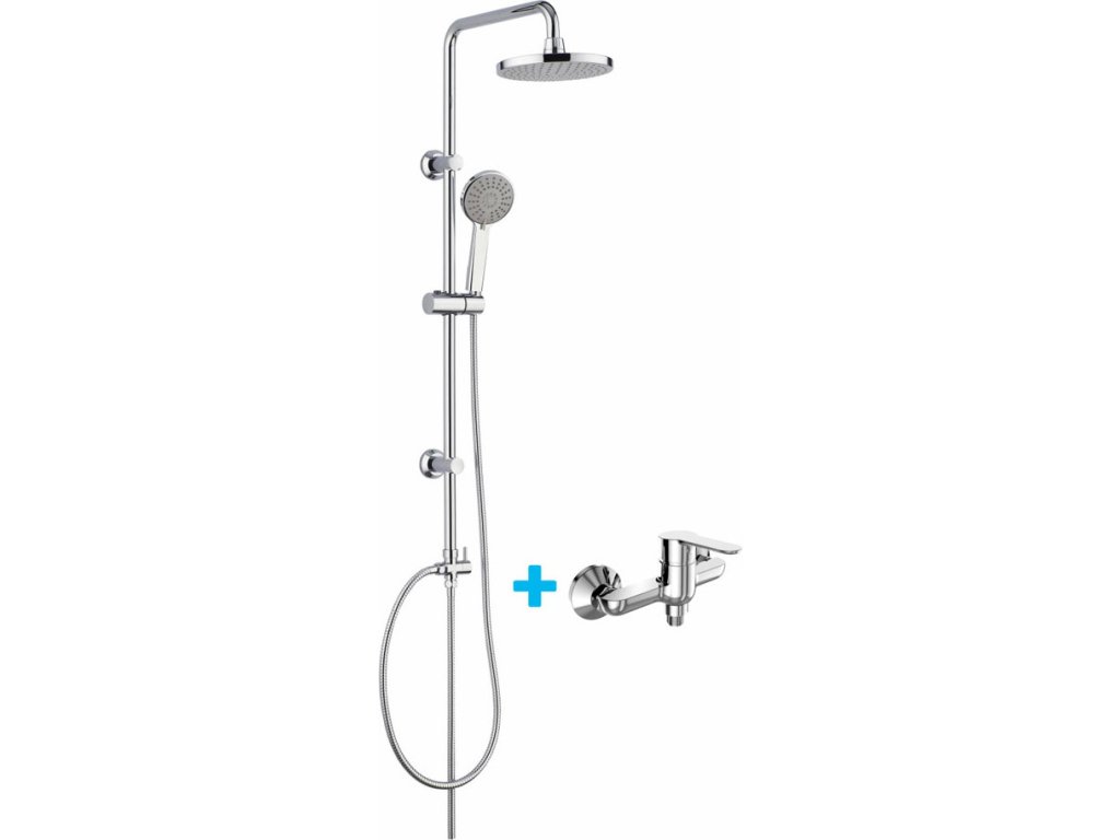 Mereo Sprchový set: Sprch. baterie a souprava s horním vývodem, pochromovaný plast, ruční a hlavová sprcha CB610ZL