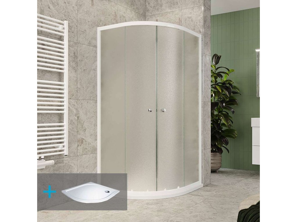 Mereo Sprchový set z Kory Lite, čtvrtkruh, 90 cm, bílý ALU, Grape a vaničky vč. sifonu, bez noži CK35121ZM