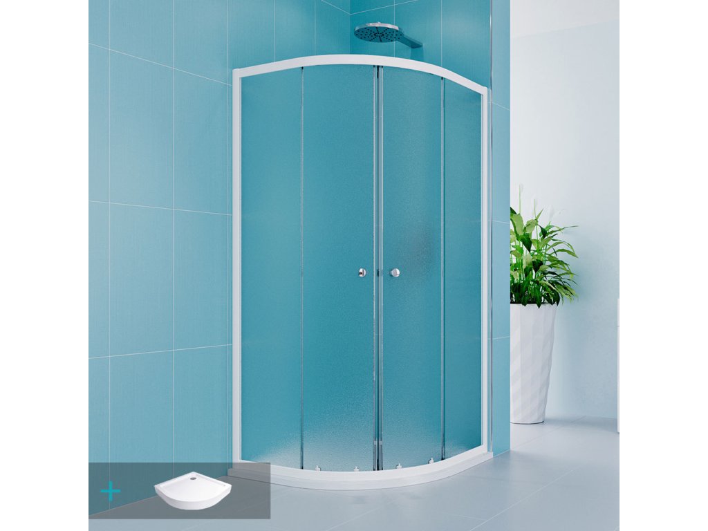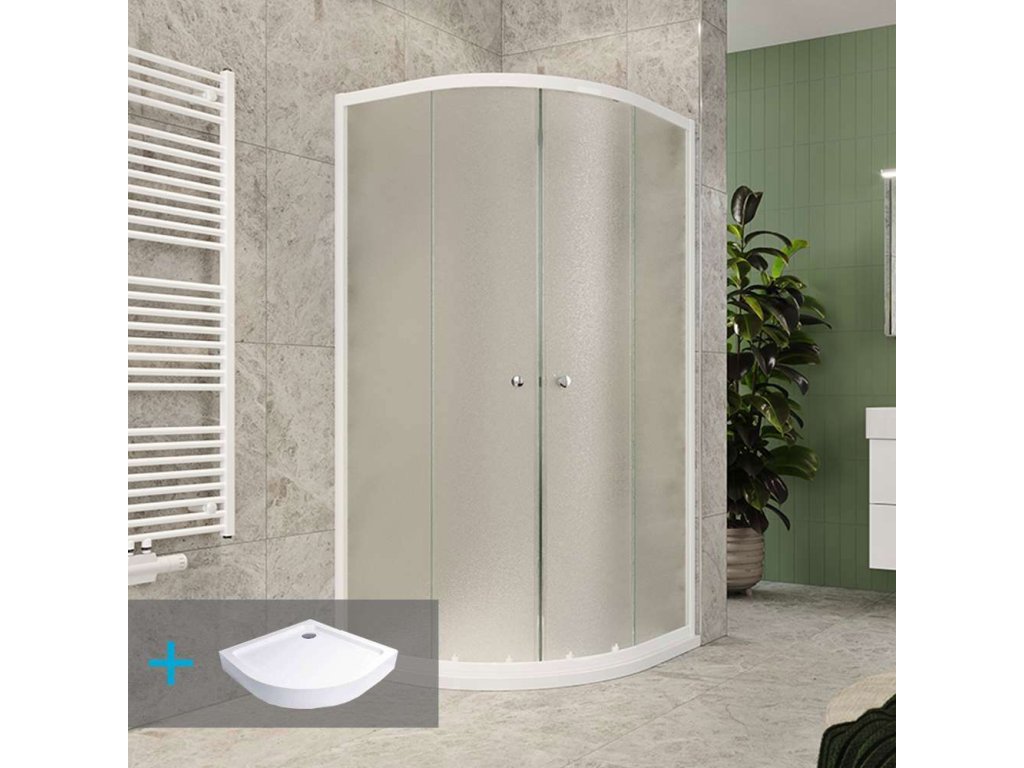 Mereo Sprchový set z Kory Lite, čtvrtkruh, 90 cm, bílý ALU, sklo Grape a vysoké SMC vaničky CK35121ZH