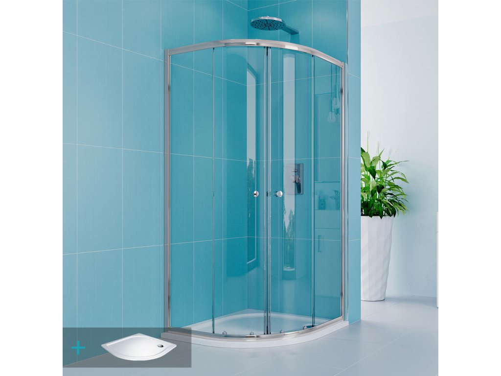 Mereo Sprchový set z Kory Lite, čtvrtkruh, 90 cm, chrom ALU, sklo Čiré a vaničky z litého mramoru CK35123ZM