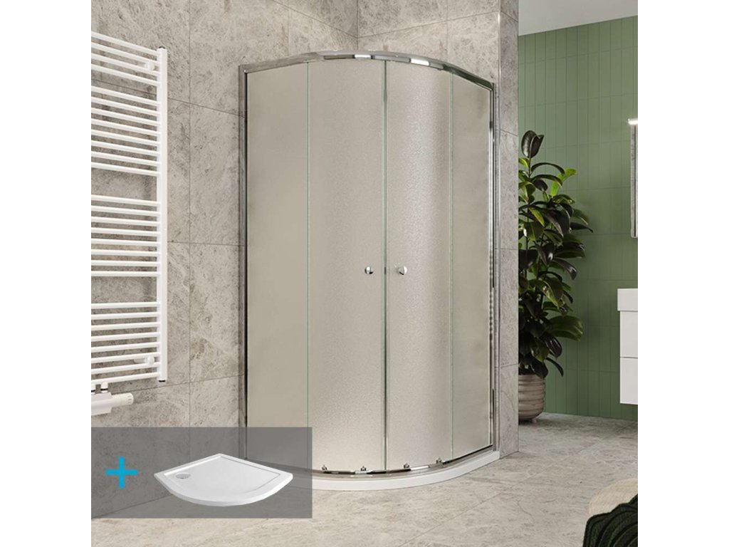 Mereo Sprchový set z Kory Lite, čtvrtkruh, 90 cm, chrom ALU, sklo Grape a nízké SMC vaničky CK35131ZN