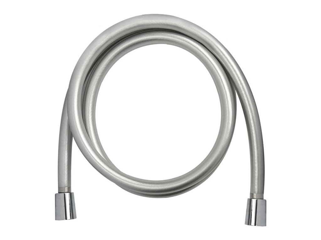Sprchová hadice dvouzámková šedostříbrná v délce 150 cm. Hadice se montuje mezi baterii a sprchovou hlavici.