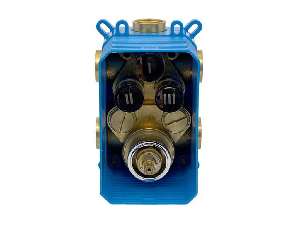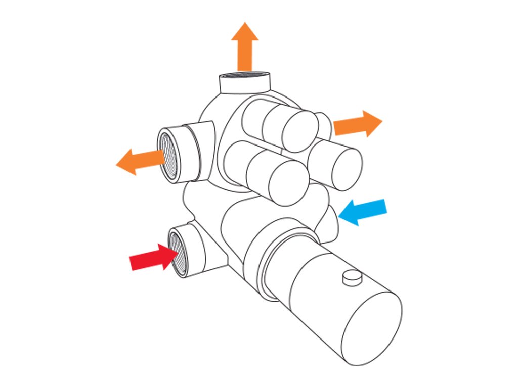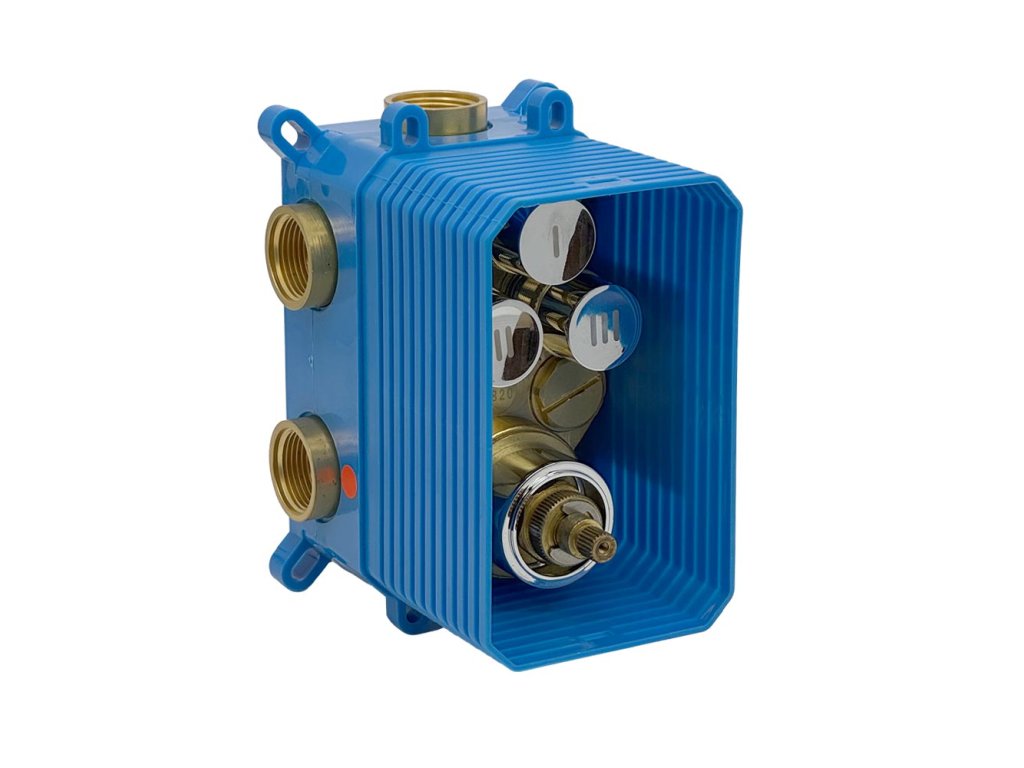 Třícestná varianta (přepínání tří poloh tlačítkem) je určena do sprchových koutů s ruční, hlavovou sprchou a dalším zdrojem tekoucí vody, např. vodopádem.