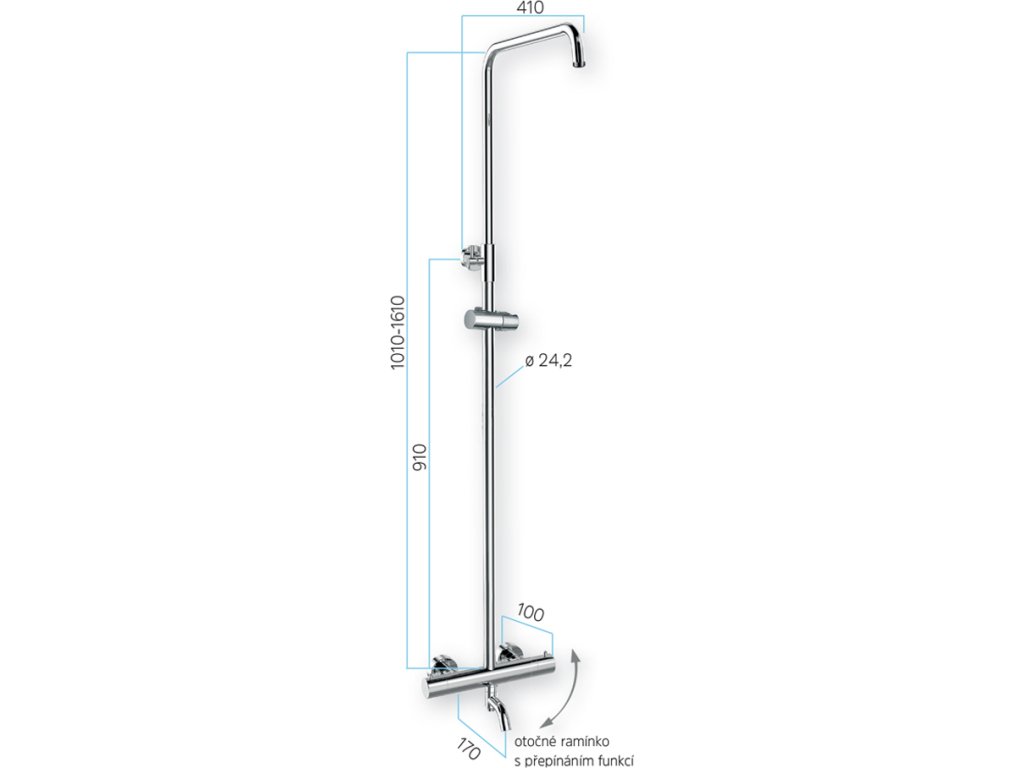 - Anti-twist: systém proti překroucení hadice - pro správnou funkci připojte delší kónusovou koncovku na ruční sprchu.