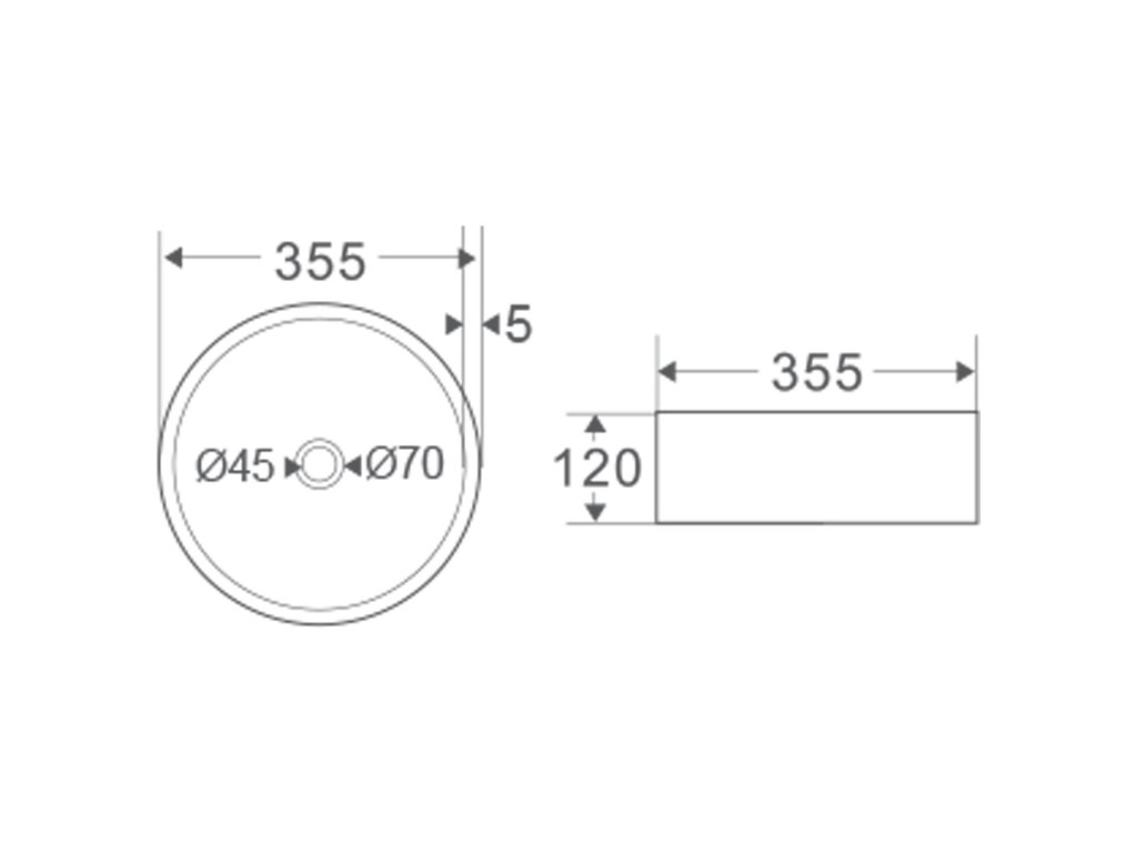 Mereo Umyvadlo na desku bez přepadu, 355x120 mm, kulaté, keramické - pro zaslání balíkem UC363612CP