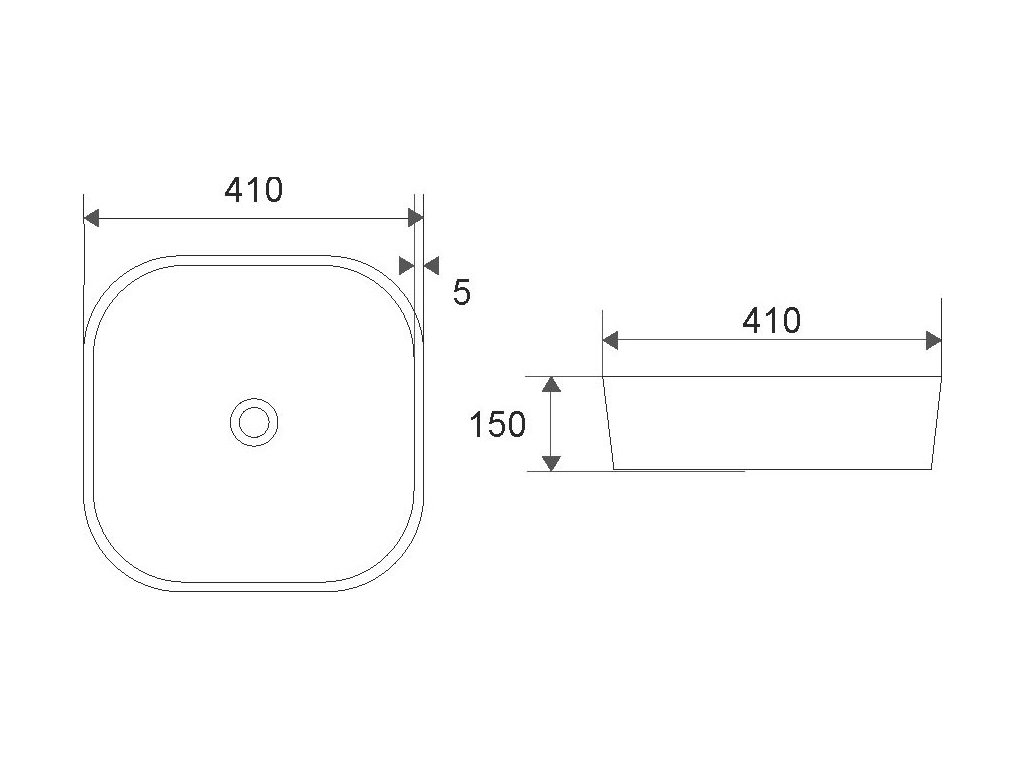 Mereo Umyvadlo na desku bez přepadu, 410x410x150 mm, čtvercové, keramické - pro zaslání balíkem UC414115SP