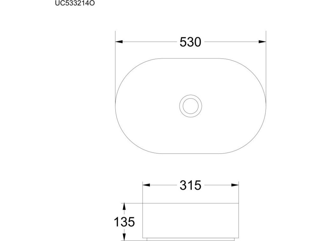 Mereo Umyvadlo na desku bez přepadu, 530x315x135 mm, oválné, keramické UC533214O