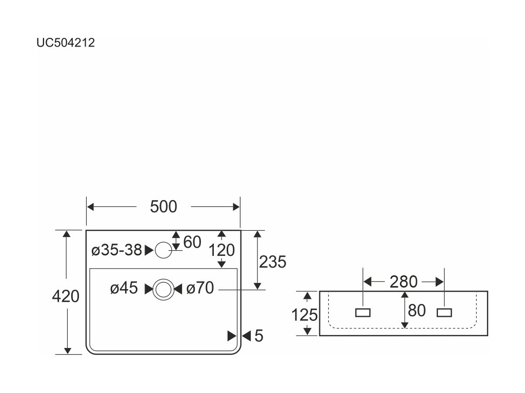Umyvadlo se dodává bez výpusti a sifonu – je třeba je zakoupit samostatně podle zvoleného způsobu instalace a přítomnosti přepadu.