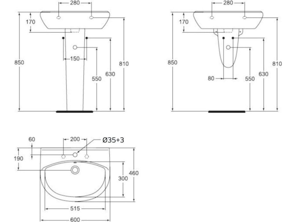 Keramické umyvadlo 60 cm s otvorem pro baterii a přepadem. Hlavní předností této série je funkčnost a líbivý design.