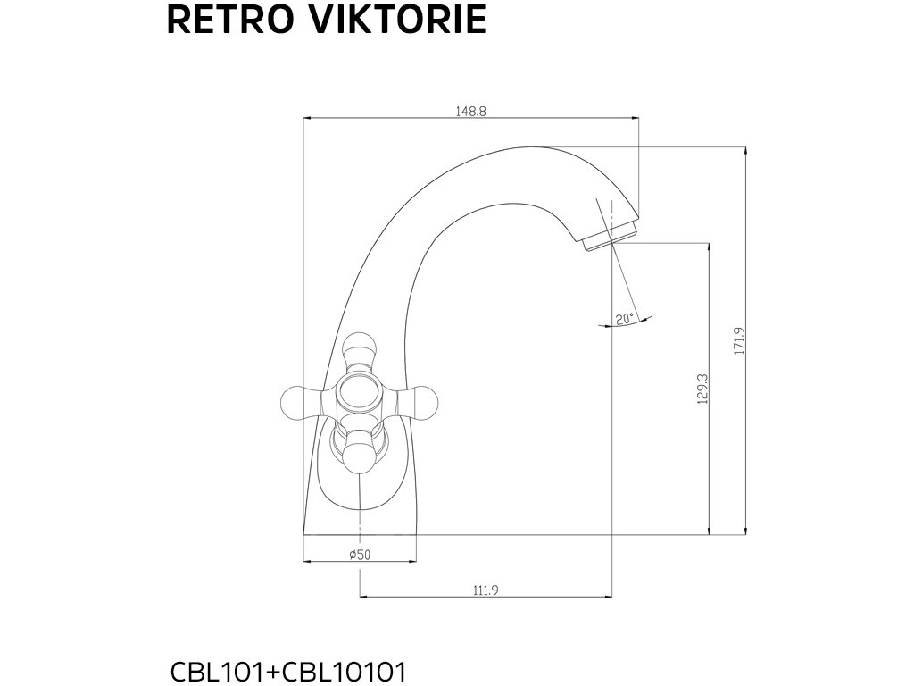 Mereo Umyvadlová stojánková baterie, Retro Viktorie, bez výpusti, chrom CBL10101