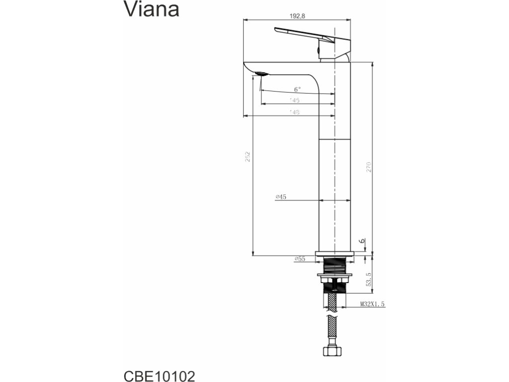 Mereo Umyvadlová stojánková baterie vysoká, Viana, bez výpusti, chrom CBE10102