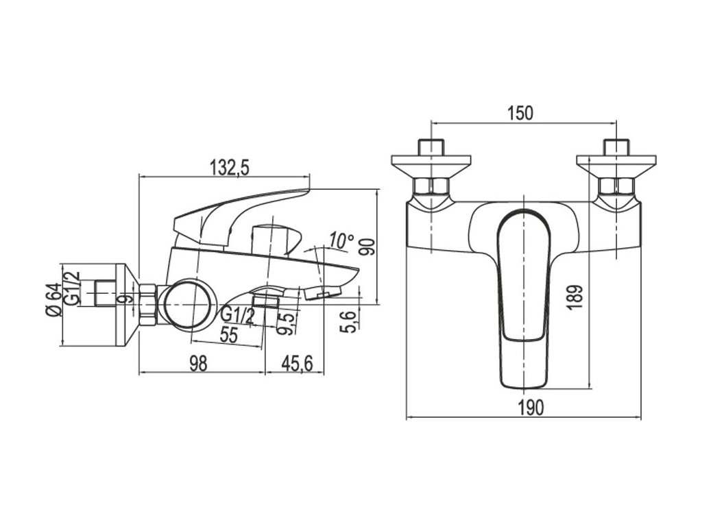 Mereo Vanová nástěnná baterie, Eve, bez příslušenství, 150 mm, chrom CBV90104